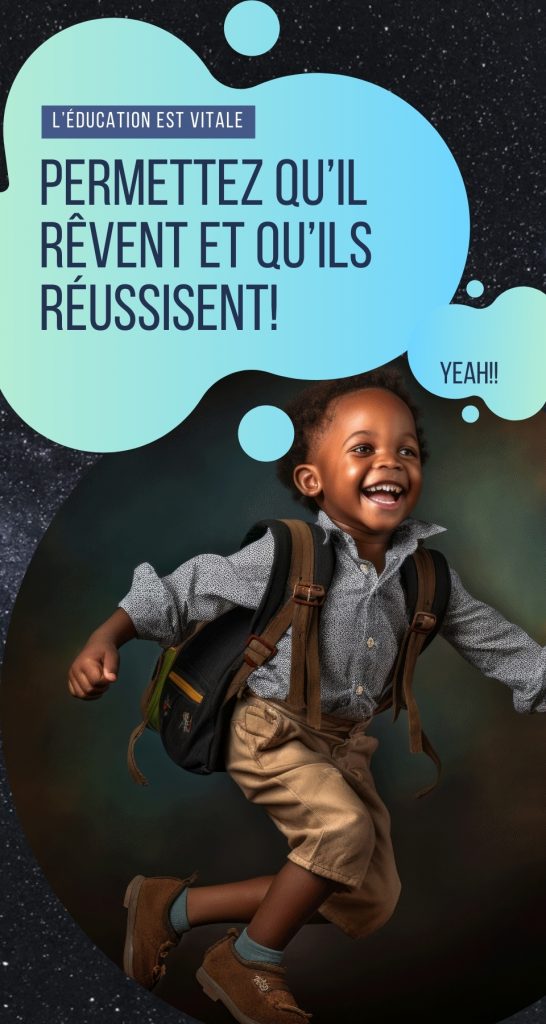 Au cœur de notre mission réside le pouvoir de l'éducation, une lumière qui éclaire le chemin vers des horizons infinis. Votre soutien est bien plus qu'un simple acte de générosité ; c'est une invitation à semer les graines du savoir, à offrir des ailes à des enfants afin qu'ils puissent un jour, dans un élan de liberté et de confiance, s'envoler vers des sommets inexplorés. Ensemble, bâtissons un monde où chaque enfant, peu importe ses origines, peut réaliser son plein potentiel et laisser son empreinte dans le firmament de l'avenir.